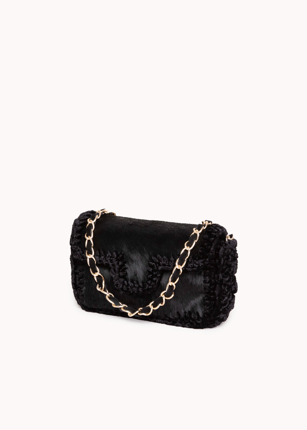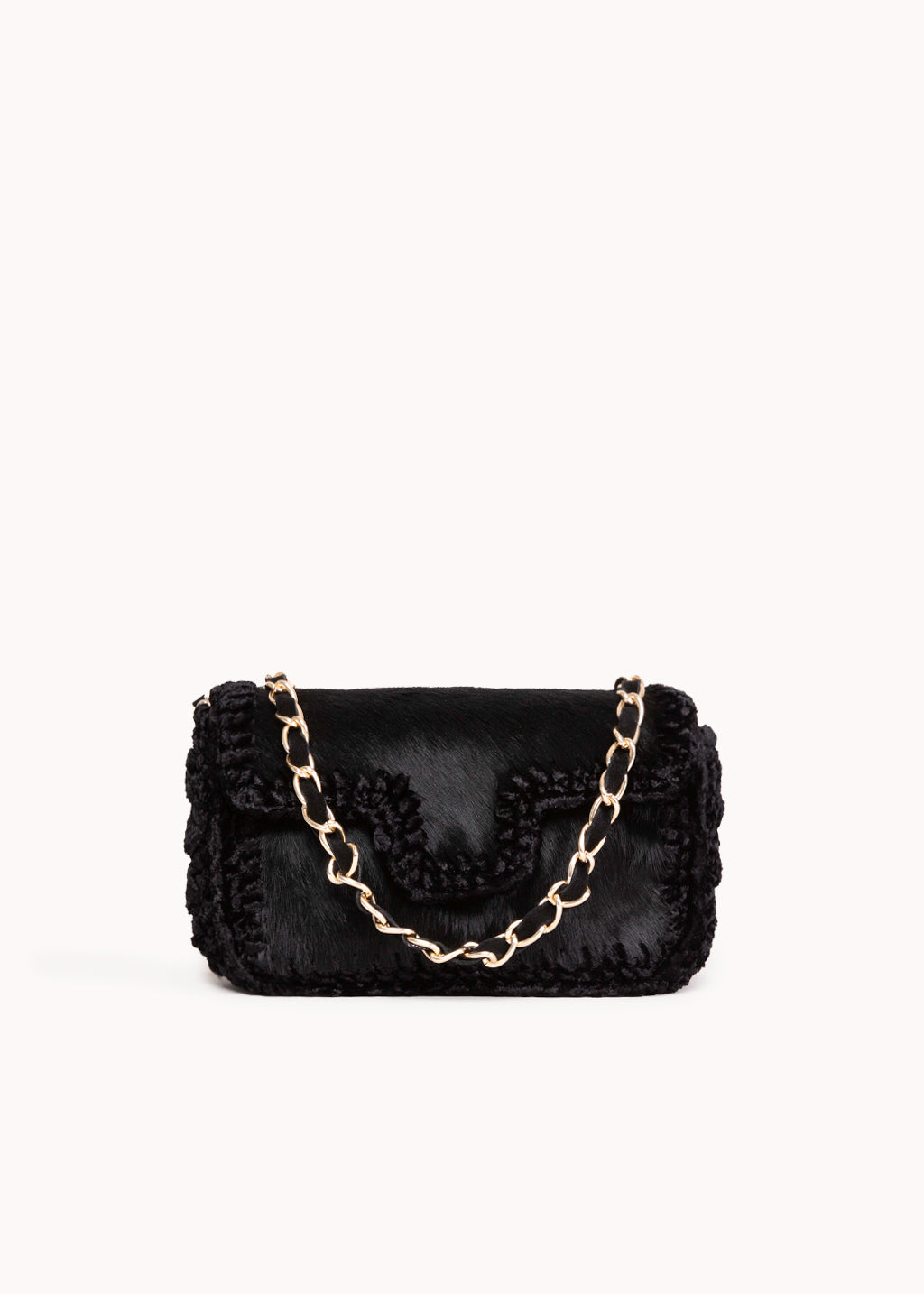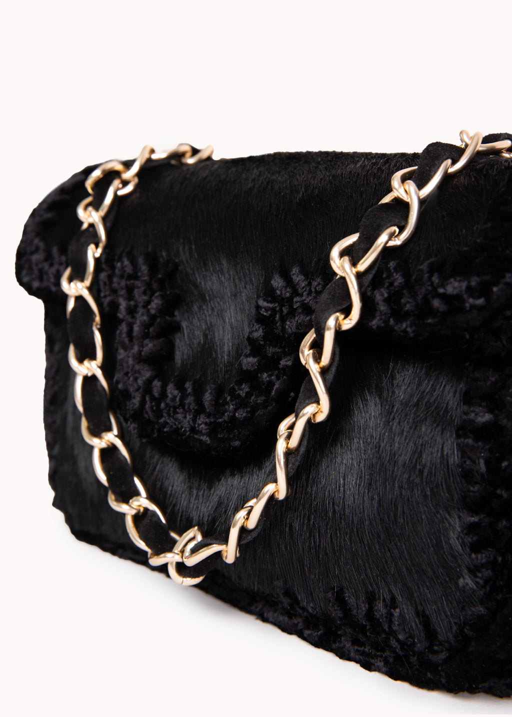 Borsa in cavallino con rifiniture intrecciate a mano , tracolla a catena metallica. Chiusura magnetica, interno foderato con tasca.