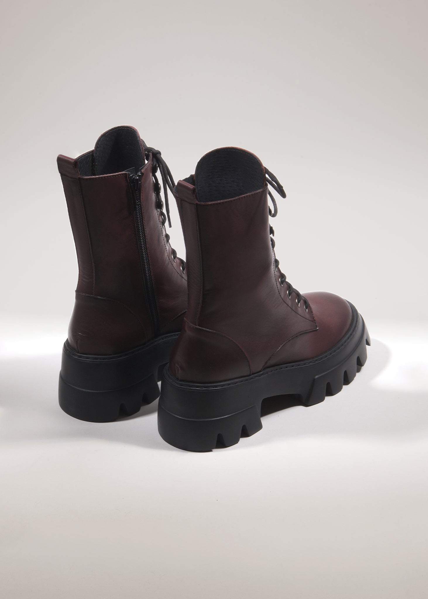 The MOEN ankle boot features an essential design, paired with an extra-light chunky rubber sole, giving it a gritty look. It is practical and minimalist, with a distinctive style that catches the eye.