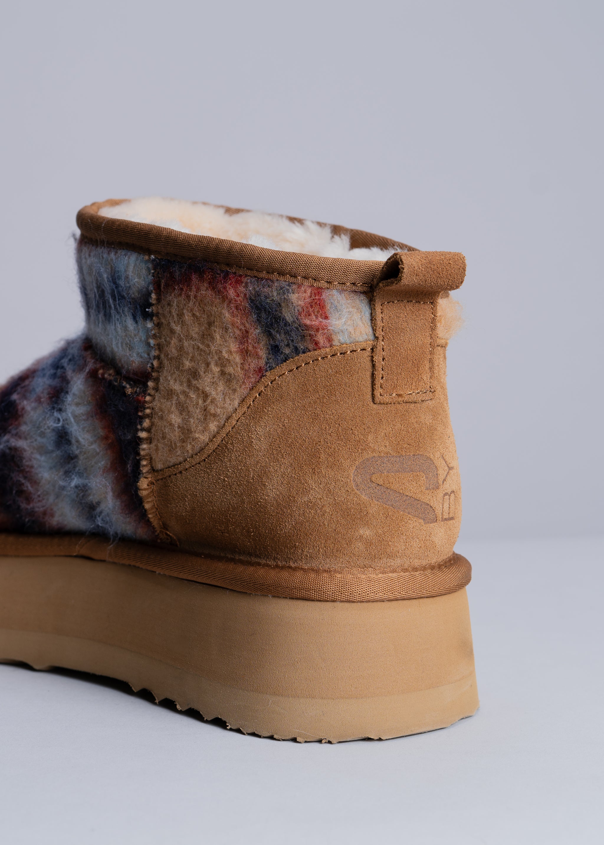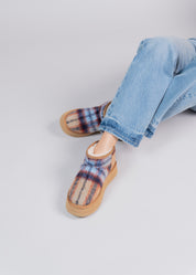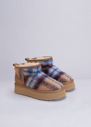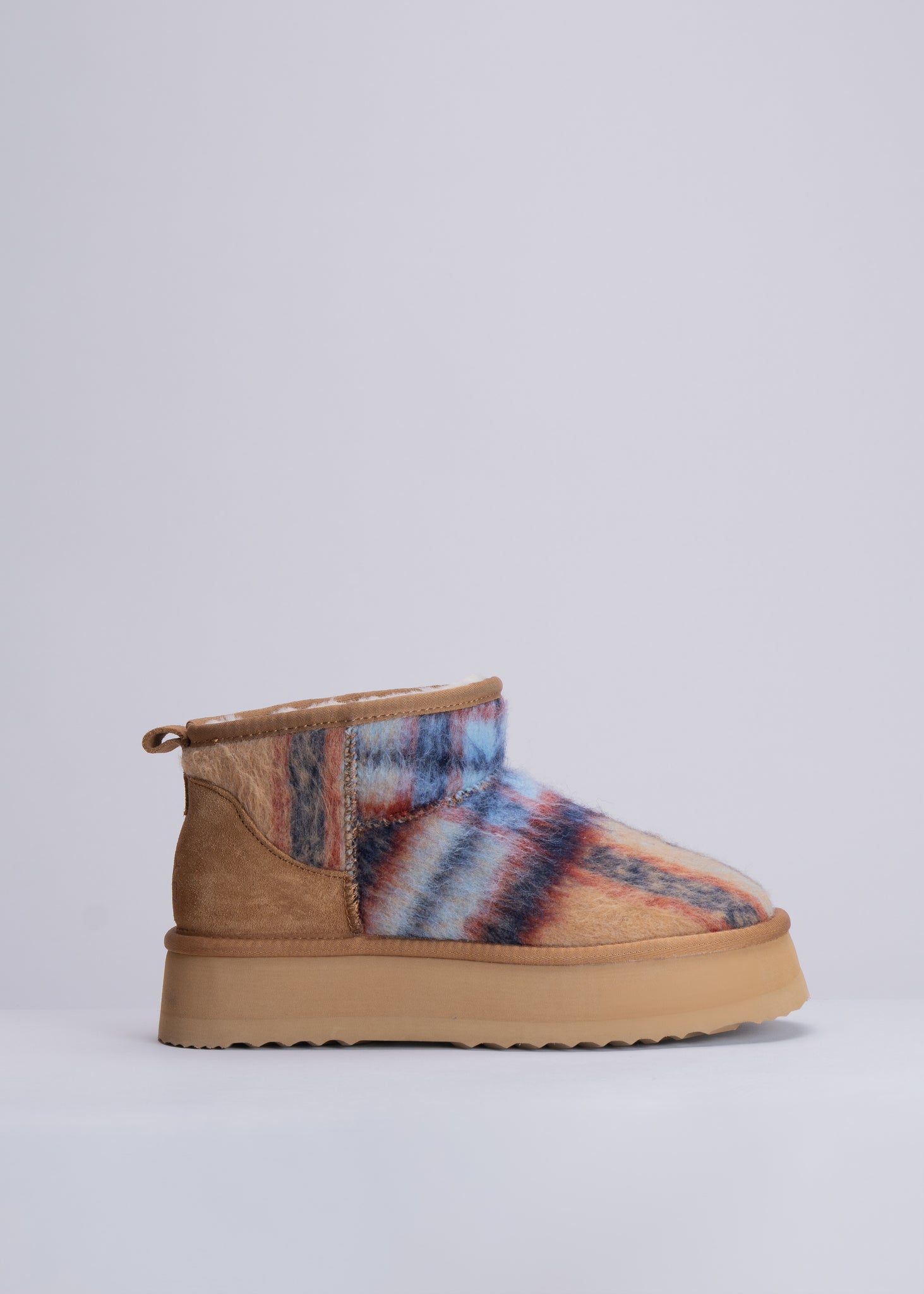 POLLY - BLUE CAMEL TARTAN WOOL AND SHEARLING ANKLE BOOT
