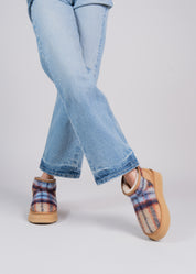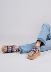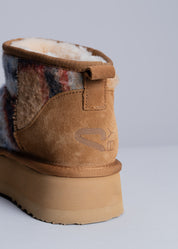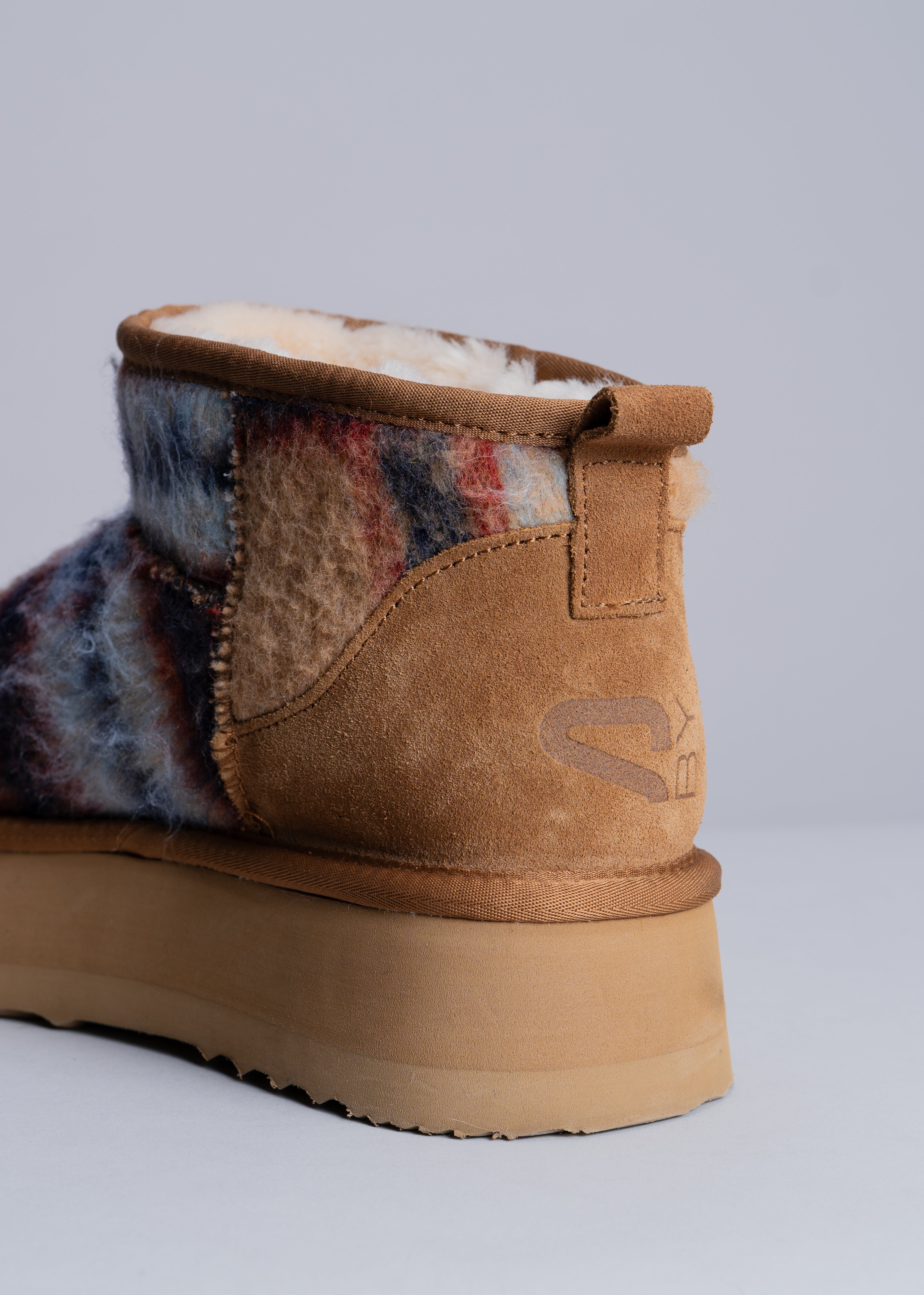 The POLLY ankle boot is the perfect fusion of style, comfort and functionality. Made of warm sheepskin, POLLY envelops the foot in dreamy softness, always keeping it dry thanks to its ability to absorb moisture. The ultra-light camel-colored EVA sole, with platform, guarantees a stable fit, while the tartan wool upper adds a touch of timeless elegance. Easy to wear and extremely versatile, the POLLY ankle boot is the essential accessory to add style to your outfit during the colder seasons.