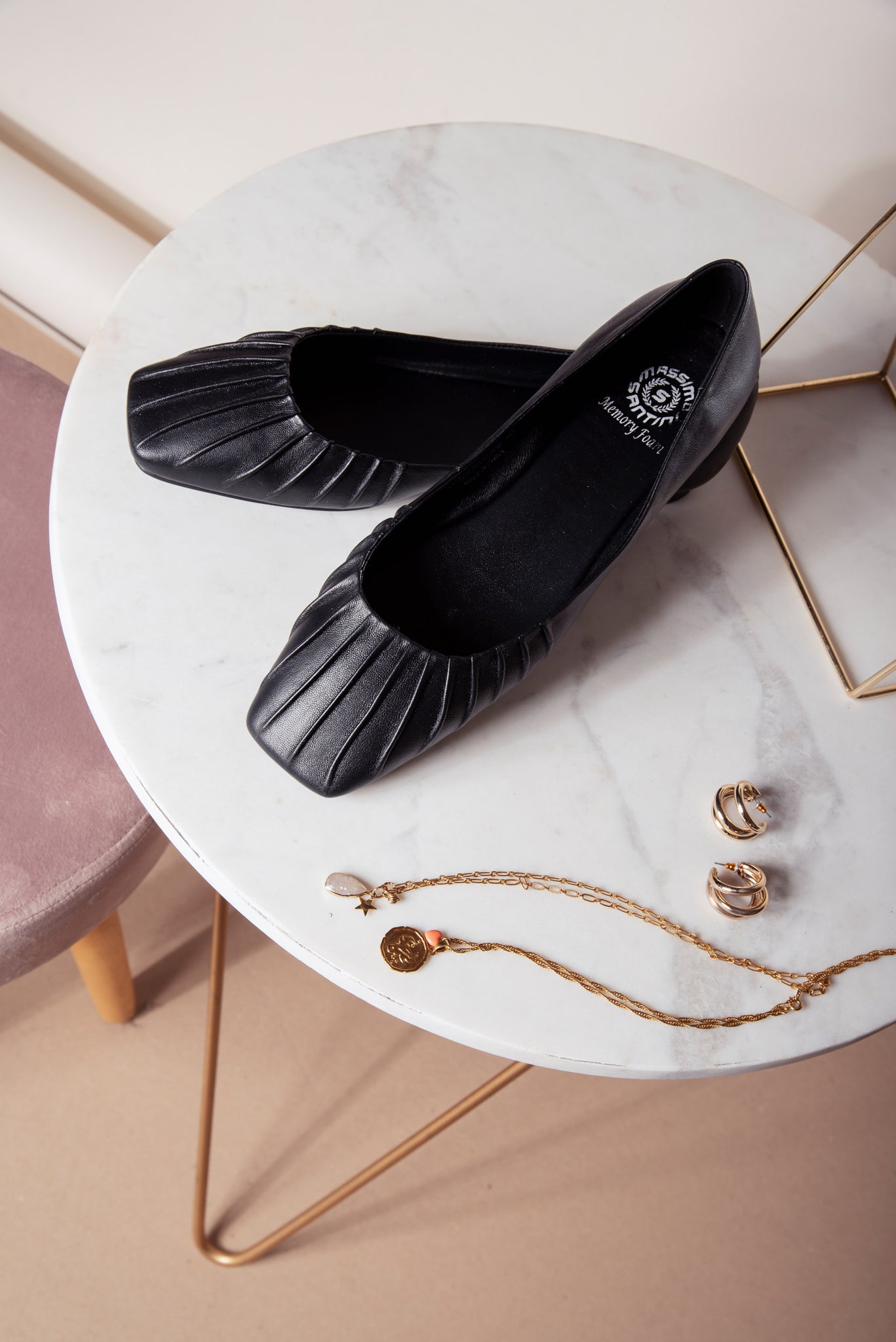 The latest born: a loafer with gentle, squared lines in classic black color.
