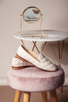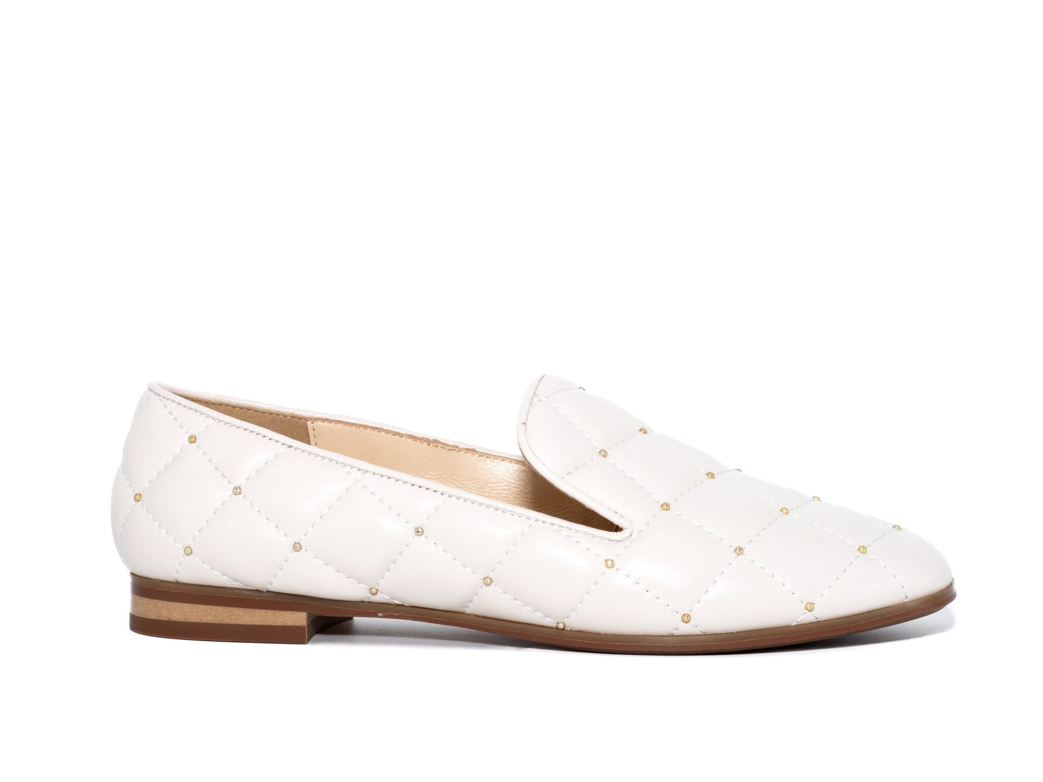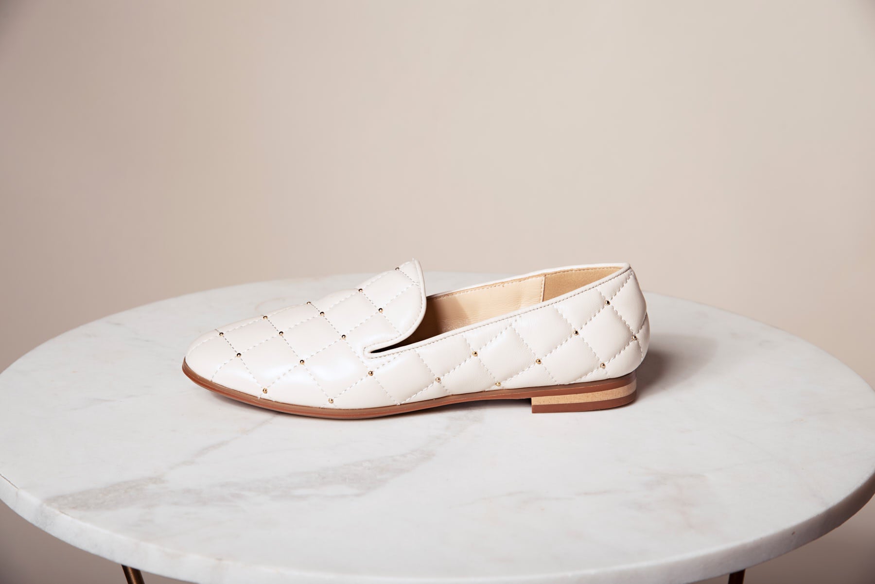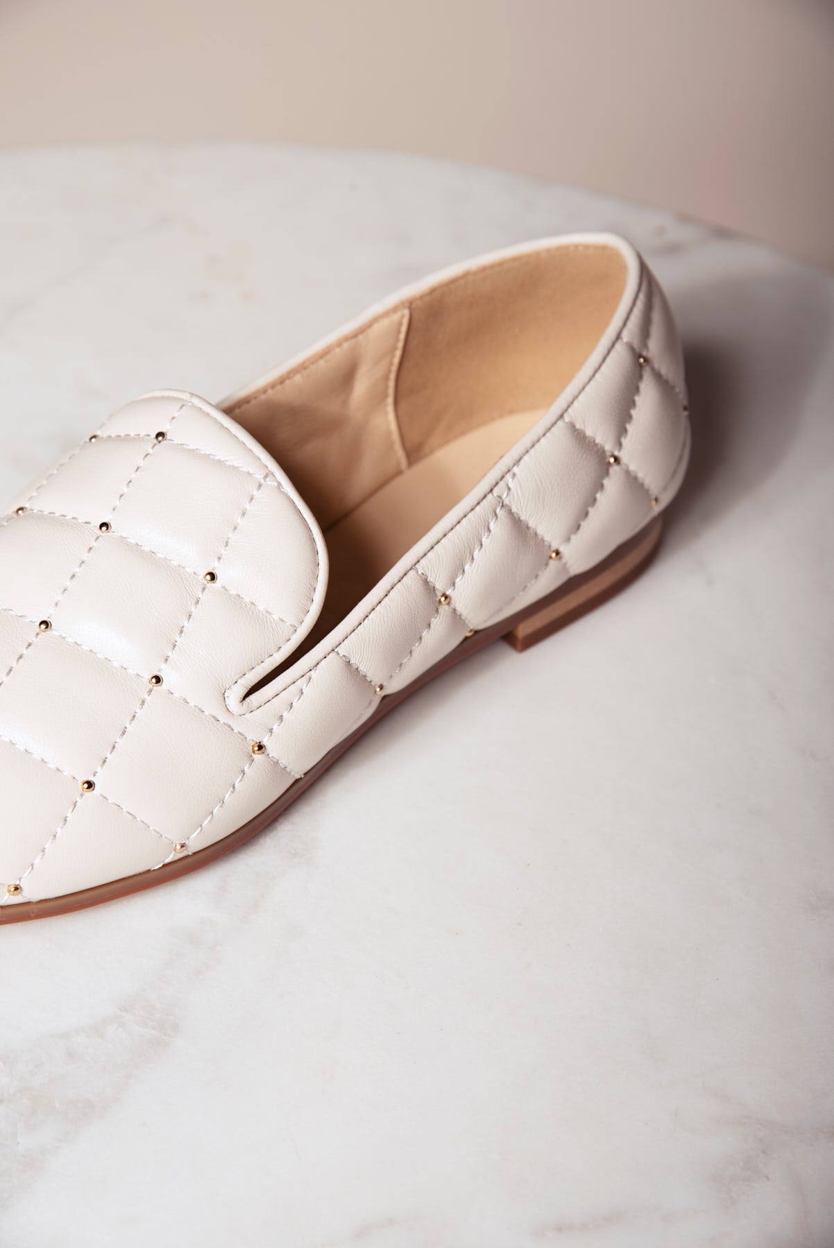 Timeless loafer, soft and comfortable with that elegant ease in a neutral and feminine milk hue.