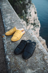 A very versatile and refined slipper with side woven pattern and fringes. An elegant, lightweight summer classic.