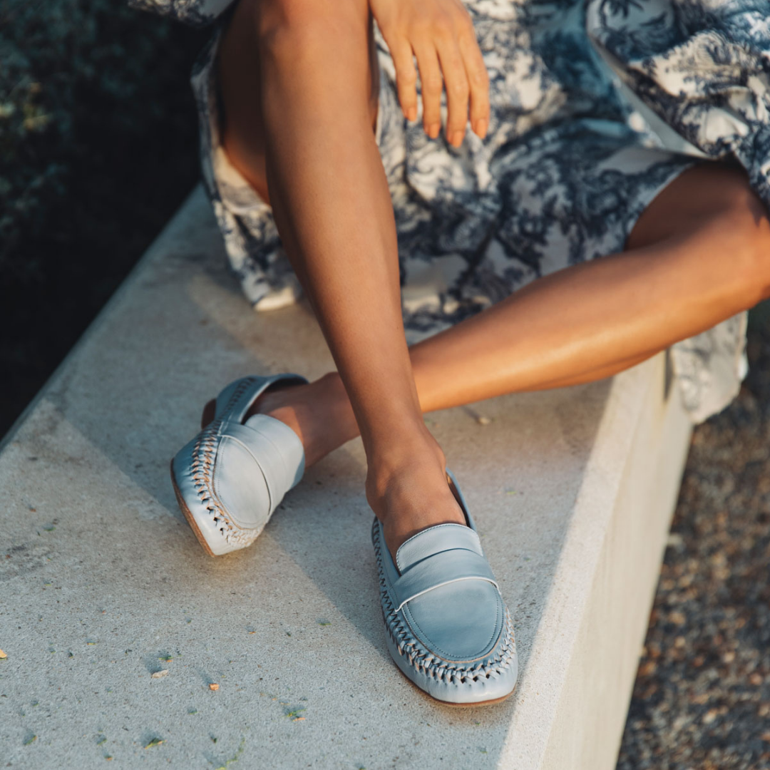 A very versatile and refined loafer with side woven pattern and comfortable rubber sole.
