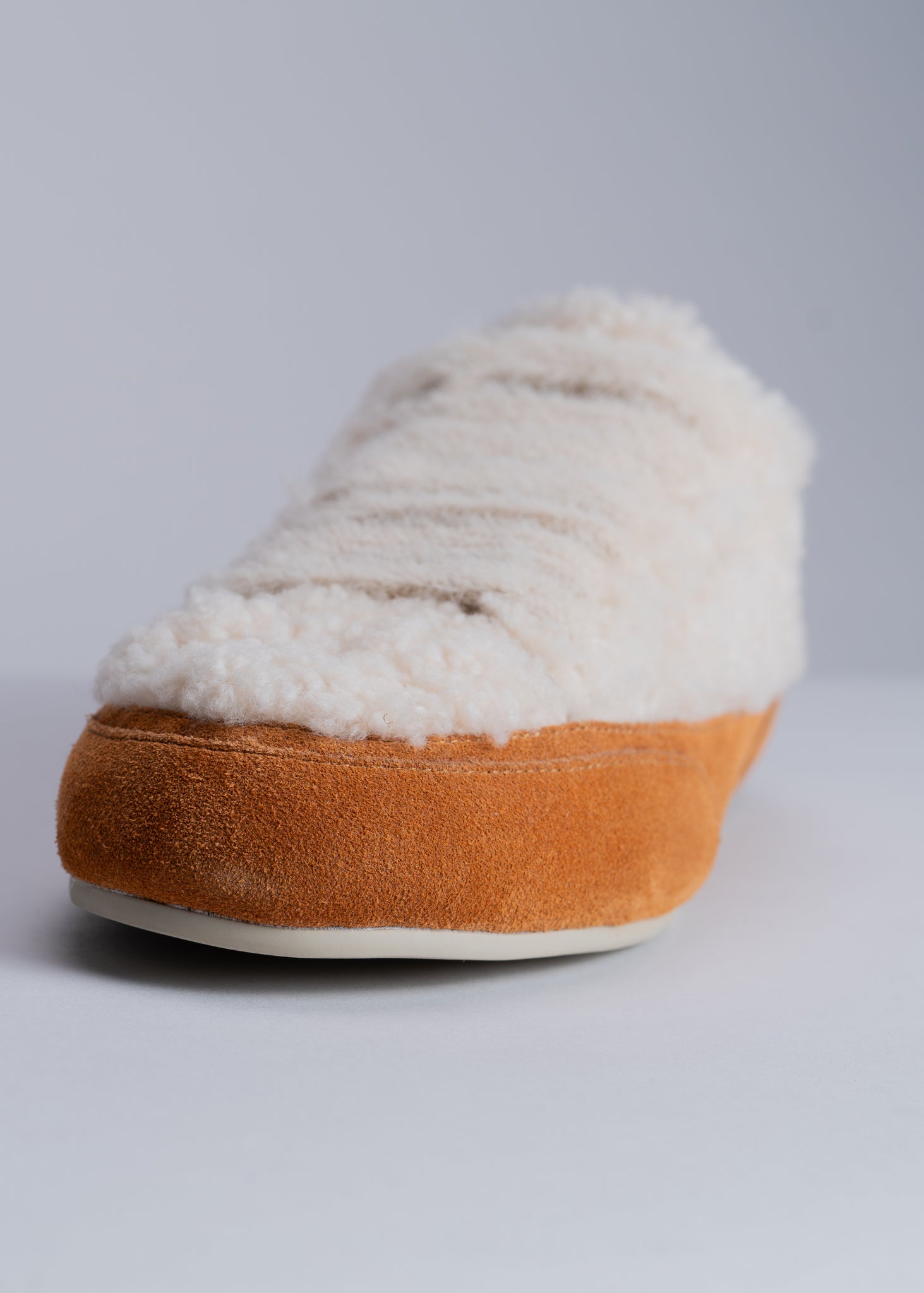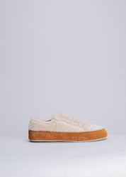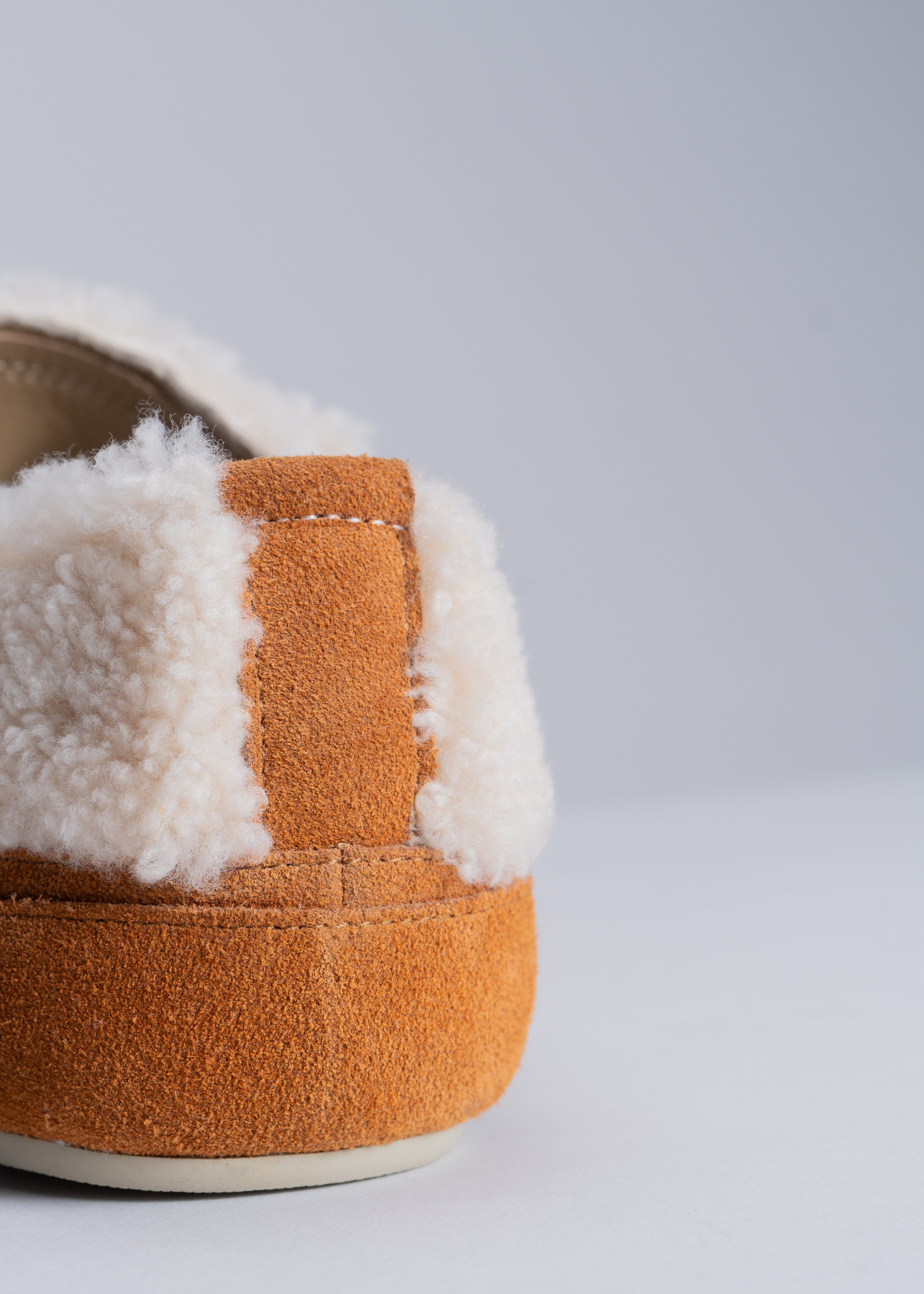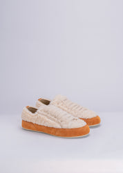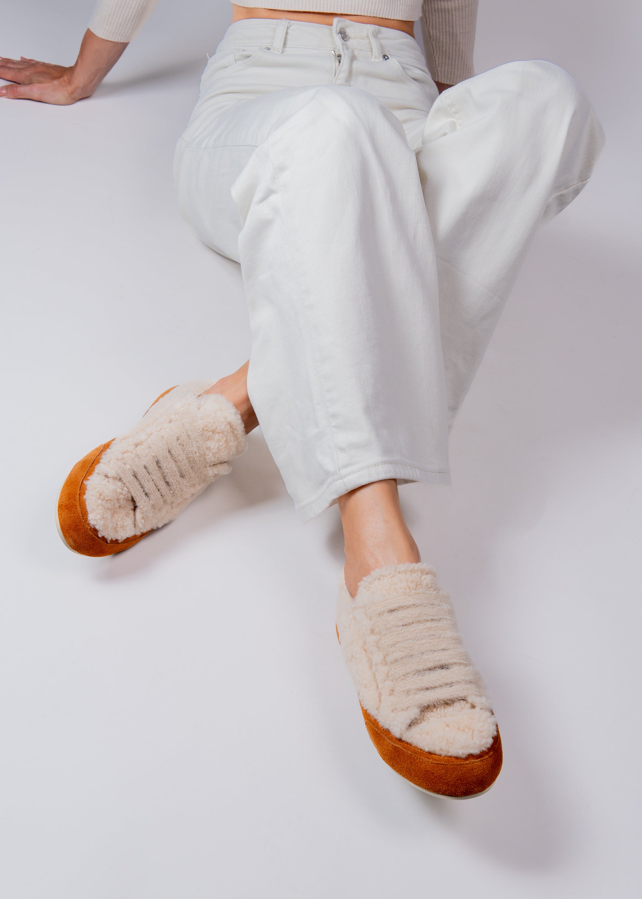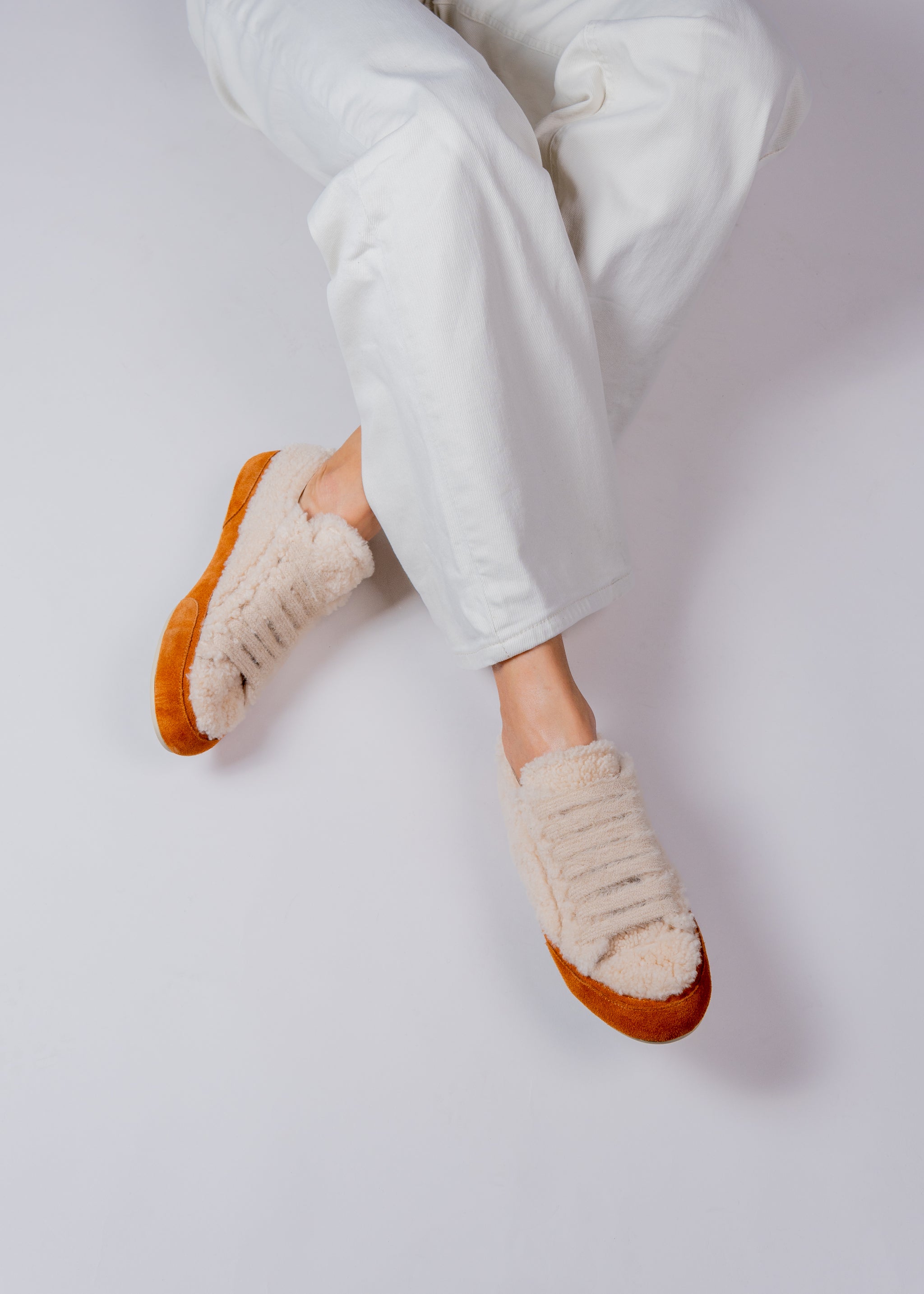 Here it is: the winter version of the NAXSOS sneaker, crafted in cozy shearling. This sneaker perfectly combines glamour and femininity, making it a must-have for the season. The leather-lined interior features an incredibly soft memory foam insole, making it a comfortable choice suitable for both leisure and more formal occasions, adding a touch of casual elegance to a work suit.