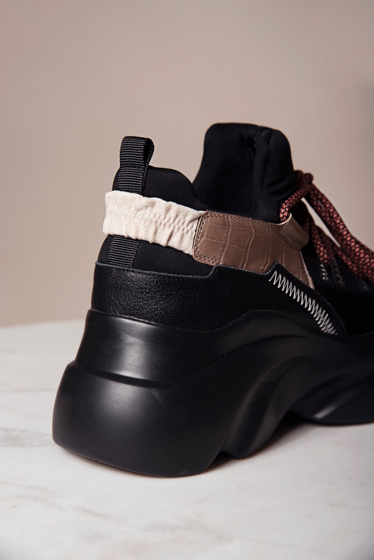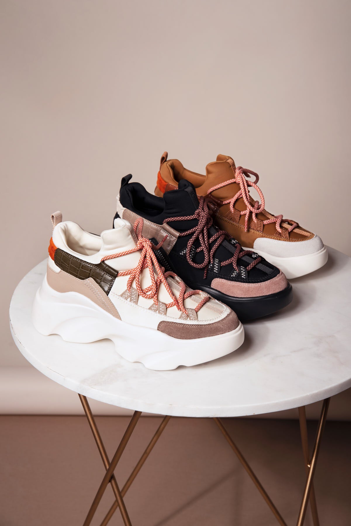 Tomaia: lycra, pelle scamosciata di vitello, cocco pu, microfibra