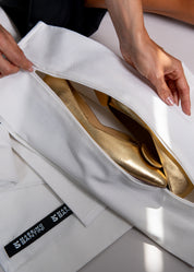 PASSENGER in resistente tela canvas color bianco naturale è l'accessorio ideale per custodire le tue scarpe con stile e praticità, soprattutto durante i viaggi. Dotata di una comoda zip centrale, PASSENGER assicura una chiusura sicura e facile accesso, mentre il manico in raso logato aggiunge un tocco di eleganza. Leggera e versatile, PASSENGER protegge efficacemente le tue scarpe da polvere e graffi, rendendola l'accessorio indispensabile per i viaggiatori che amano mantenere i propri accessori impeccabili.