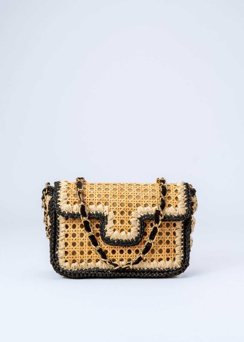 RAISSA - BORSA BURRO E NERA IN RAFIA NATURALE