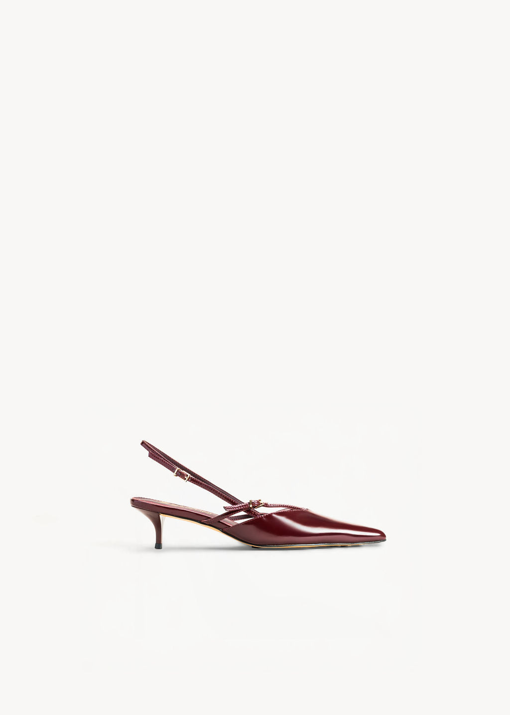 Slingback in pelle abrasivata mosto dalla forma a mandorla con silhouette elegante, tacco 4.5 cm e suola in gomma driving.